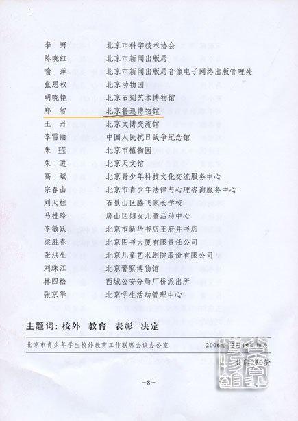 我館鄭智同志被北京市青少年學(xué)生校外教育工作聯(lián)席會(huì)議辦公室、市教委和市人事局授予“北京市校外教育先進(jìn)個(gè)人”榮譽(yù)稱(chēng)號(hào)