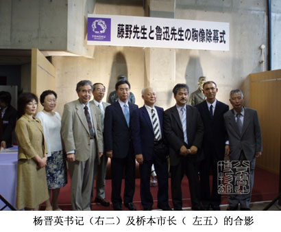 兩年多以來,以紀(jì)念魯迅赴仙臺留學(xué)100周年及魯迅與藤野先生“惜別”100周年為契機,中日兩國學(xué)者與兩國相關(guān)機構(gòu)共同舉辦了一系列紀(jì)念活動。2006年,北京魯迅博物館與蘆原市政府商定,互贈魯迅和藤野銅像,并各贈一尊給仙臺東北大學(xué),以紀(jì)念兩位先人。銅像于2007年初鑄成,并于2月底分別運抵東北大學(xué)。當(dāng)時召開的新聞發(fā)布會受到日本30多家媒體的關(guān)注,在日本國內(nèi)產(chǎn)生了廣泛而積極的反響。本次仙臺揭幕式是東北大學(xué)百年校慶紀(jì)念活動中的一項重要內(nèi)容,也是繼在日本福井縣蘆原市藤野嚴(yán)九郎紀(jì)念館舉行的藤野與