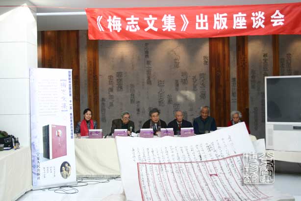 北京魯迅博物館館長(zhǎng)孫郁、梅志之女張曉風(fēng)、寧夏人民出版社副社長(zhǎng)哈若蕙主持會(huì)議。會(huì)上,哈副社長(zhǎng)代表寧夏人民出版社將《梅志文集》贈(zèng)送給北京魯迅博物館和中國(guó)現(xiàn)代文學(xué)館,并介紹說(shuō)《梅志文集》是國(guó)家新聞出版總署“十一五”規(guī)劃的重點(diǎn)圖書項(xiàng)目。
