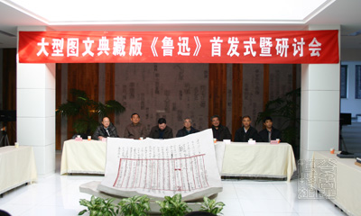 1月6日,大型圖文典藏版《魯迅》首發(fā)式暨研討會(huì)在北京魯迅博物館隆重舉行。這次活動(dòng)由北京魯迅博物館和河南文藝出版社聯(lián)合舉辦,北京魯迅博物館館長孫郁研究員、黨委書記楊晉英先生、黨委副書記趙國順先生、館長助理黃喬生先生、中原出版?zhèn)髅郊瘓F(tuán)副總裁王成法先生、河南文藝出版社社長王幅明先生、魯迅之子周海嬰先生以及來自京津的二十多位魯迅研究專家等出席了首發(fā)式和研討活動(dòng)。