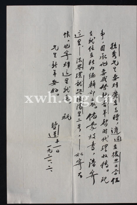 1921年,陳望道在復(fù)旦大學(xué)任教時,陳獨(dú)秀去廣州,將編輯《新青年》的事情交付于陳望道,在這種情況下,陳望道于2月11日給錢玄同寫了此信。