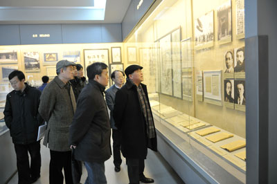 勵局長一行在館長楊陽、副館長趙國順、何洪、黃喬生等陪同下,先后考察了魯迅舊居、魯迅生平陳列廳、文物庫房等。