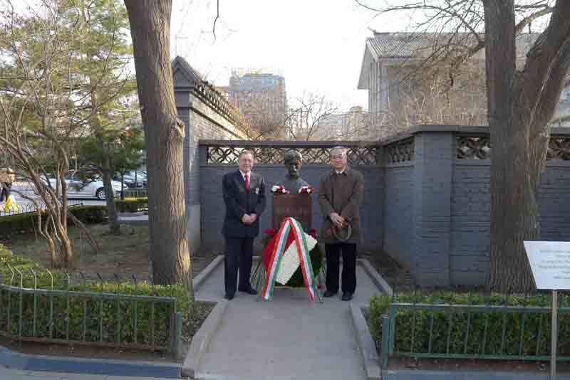 下午,匈牙利大使館特命全權(quán)大使庫紹伊•山多爾先生閣下來到北京魯迅博物館,在民族英雄、革命家、愛國詩人裴多菲•山多爾的銅像前敬獻鮮花。楊陽館長、趙國順副書記出席了儀式。