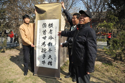 這次活動首先把今年的3月5日至4月5日定為魯迅紀念月,金融街老協(xié)18個街道近800人走進了北京魯迅博物館。為了更好的照顧這些“老鄰居”,我們與金融街老協(xié)做了詳盡的參觀預案,對前來參觀的老人按年齡、體力分組參觀,此外,我們還通過組織知識問答、朗誦、鮮花等形式,和老人們進行互動活動,保證老人們安全、快樂的出游。宏匯園等街道的老人們還為魯迅像贈獻了鮮花、獻詞,想我館贈送了書法、繪畫和手工藝品,北京魯迅博物館趙國順副書記代表我館接受了老人們的捐贈。同時,我館還向老協(xié)的老人們贈送了魯迅知識普及讀物。這些互動活動與紀念儀式為魯迅紀念月平添了一抹溫馨的底色。