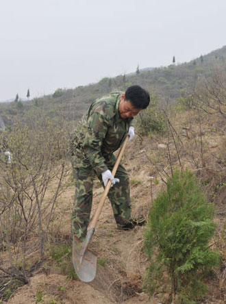 2012年4月18日,北京魯迅博物館全體職工在館領(lǐng)導(dǎo)趙國順副書記、何洪副館長的帶領(lǐng)下,來到懷柔青龍峽進(jìn)行一年一度的義務(wù)植樹活動(dòng)。相較于去年地勢(shì)平坦而樹苗粗壯的情況,今年同志們則要握著細(xì)小的樹苗爬山上坡,在半山腰、山頂?shù)鹊赝诳优嗤?。被種下的樹苗與周圍的松樹、酸棗樹穿插交錯(cuò),使整座山看起來生機(jī)盎然,今秋新種下的黃櫨會(huì)為景觀增添新的色彩。