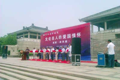 2012年5月10日,由我館與宋慶齡故居、李大釗故居、郭沫若紀(jì)念館、茅盾故居、老舍紀(jì)念館、徐悲鴻紀(jì)念館和梅蘭芳紀(jì)念館聯(lián)合舉辦的“為了中華的崛起——文化名人的愛(ài)國(guó)情懷”主題巡展(曲阜展)開(kāi)展儀式在孔子研究院舉行。出席開(kāi)幕式的有八家名人故居的領(lǐng)導(dǎo)和孔子研究院、曲阜師范大學(xué)、中共曲阜市委宣傳部等單位領(lǐng)導(dǎo),我館社教部主任錢振文和講解員陶邏思參加了巡展開(kāi)幕式。