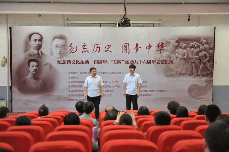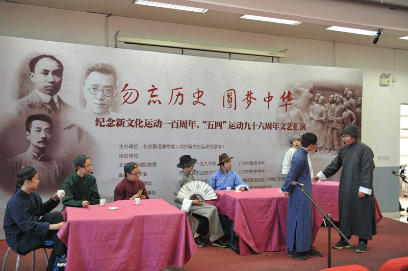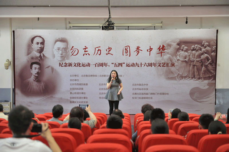 為紀(jì)念新文化運動100周年,北京魯迅博物館(北京新文化運動紀(jì)念館)于4月29日推出大型展覽《舊邦新命—新文化運動百年紀(jì)念展》。該館配合此次大型展覽,聯(lián)合東城區(qū)、西城區(qū)等十余家共建單位于5月4日下午在北京市第一五九中學(xué)舉辦了“‘勿忘歷史 圓夢中華’—紀(jì)念新文化運動一百周年、‘五四’運動九十六周年”文藝匯演,引導(dǎo)公眾和廣大青少年了解中國歷史,深刻感受中國成就,熱情謳歌中國共產(chǎn)黨的光輝歷程,大力弘揚奮斗精神和“愛國、進步、民主、科學(xué)”的“五四”精神,引導(dǎo)青少年牢固樹立中國夢的遠大理想,堅定跟黨走中國特色社會主義道路的信念,增強將個人夢想融入中國夢、勇于奮斗圓夢的信心。