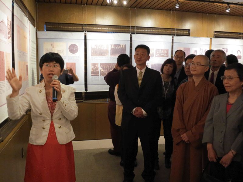 趙沈允教授、李戰(zhàn)崎副書記、覺安法師在開幕式上先后致詞,劉建昆總監(jiān)、覺安法師、江勇振教授、李戰(zhàn)崎副書記、秦素銀副研究館員等人共同為展覽剪彩。秦素銀同志為到場的嘉賓進行了現(xiàn)場講解。