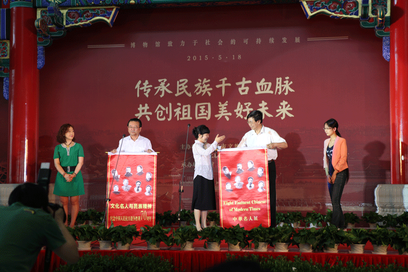 由我館參與的北京八家名人故居聯(lián)盟2015年聯(lián)合展覽活動《紀念抗日戰(zhàn)爭勝利70周年—文化名人與民族精神》也于“5•18國際博物館日”在首都博物館主會場啟動。啟動儀式上,全國政協(xié)委員、著名作家艾克拜爾•米吉提與肯尼亞國家工商會中國投資貿(mào)易委員會代表楊菲菲分別接過了北京八家名人故居聯(lián)盟巡展旗。在首都博物館首展結(jié)束后,展覽還將赴新疆霍城、廣西南寧、江蘇泰州、重慶以及北京地區(qū)的中小學、企事業(yè)單位進行巡展,并將以“中華名人展”為主題赴肯尼亞等國家展出。