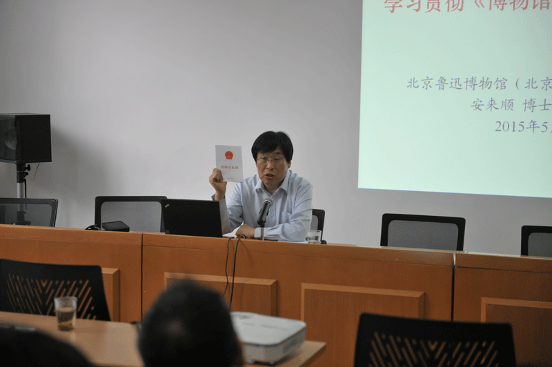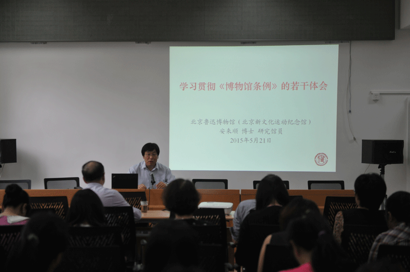 2015年5月21日下午,北京魯迅博物館(北京新文化運(yùn)動(dòng)紀(jì)念館)舉辦業(yè)務(wù)培訓(xùn),副館長(zhǎng)、中國(guó)博物館協(xié)會(huì)副理事長(zhǎng)兼秘書長(zhǎng)安來(lái)順研究館員作了題為《學(xué)習(xí)貫徹《博物館條例》的若干體會(huì)》的授課。此次業(yè)務(wù)培訓(xùn)由黃喬生常務(wù)副館長(zhǎng)主持。