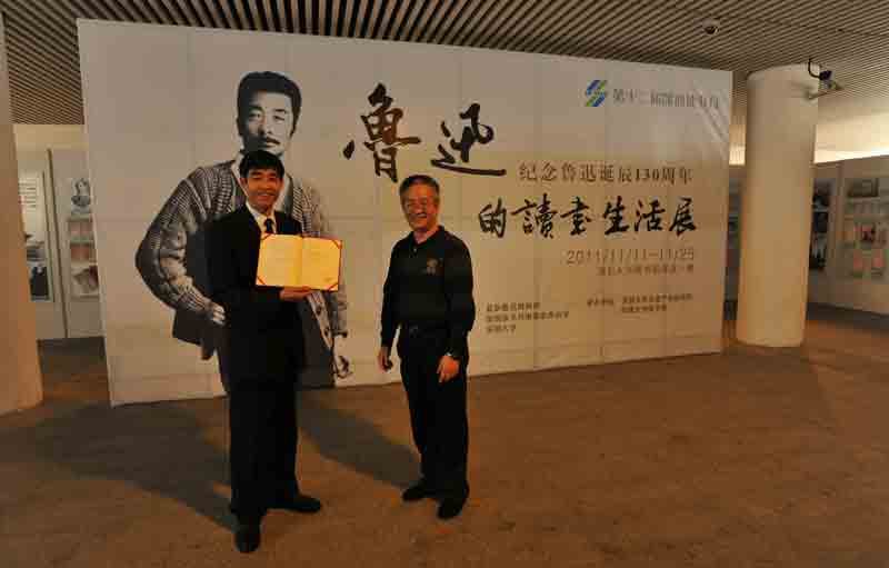 《魯迅藏外國版畫百圖》一書被深圳大學圖書館收藏。深圳大學圖書館館長張道義教授與北京魯迅博物館副館長趙國順先生在收藏儀式上合影。