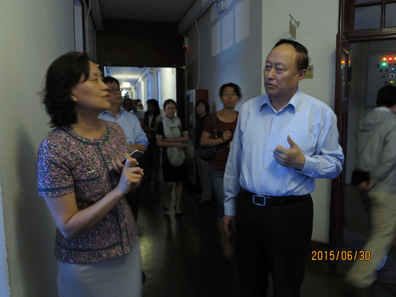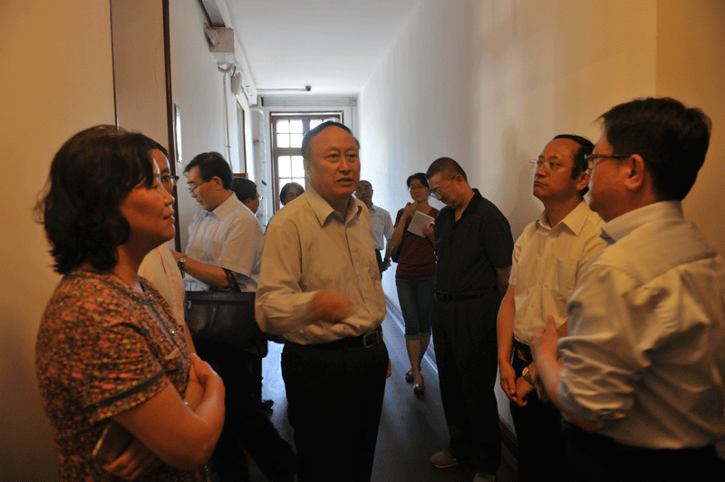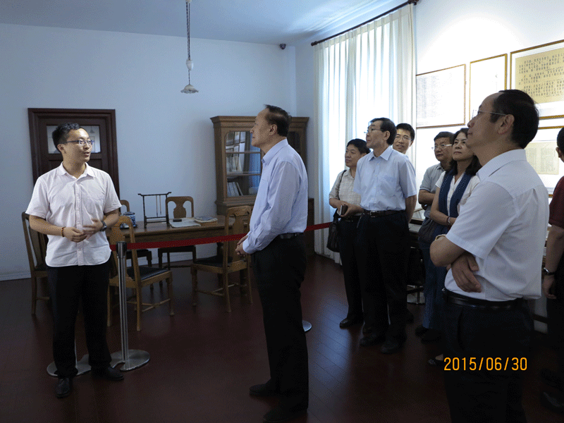 為扎實(shí)開展“三嚴(yán)三實(shí)”專題教育活動(dòng),2015年6月30日下午,北京大學(xué)黨委書記朱善璐帶領(lǐng)黨委中心組成員及相關(guān)工作人員30余人一行,來到位于五四大街29號(hào)的北京新文化運(yùn)動(dòng)紀(jì)念館(北大紅樓舊址)進(jìn)行參觀學(xué)習(xí)。黨委中心組成員先后參觀了李大釗辦公室、毛澤東工作過的第二閱覽室及蔡元培、陳獨(dú)秀專題陳列,在紅樓三層會(huì)議室作了題為“加強(qiáng)黨性修養(yǎng),堅(jiān)定理想信念”專題輔導(dǎo)報(bào)告。國家文物局黨組成員、副局長顧玉才,國家文物局直屬機(jī)關(guān)黨委副書記王莉,北京魯迅博物館(北京新文化運(yùn)動(dòng)紀(jì)念館)黨委書記、館長郭俊英等同志陪同參觀展覽,與北京大學(xué)黨委中心組部分成員進(jìn)行了交流。