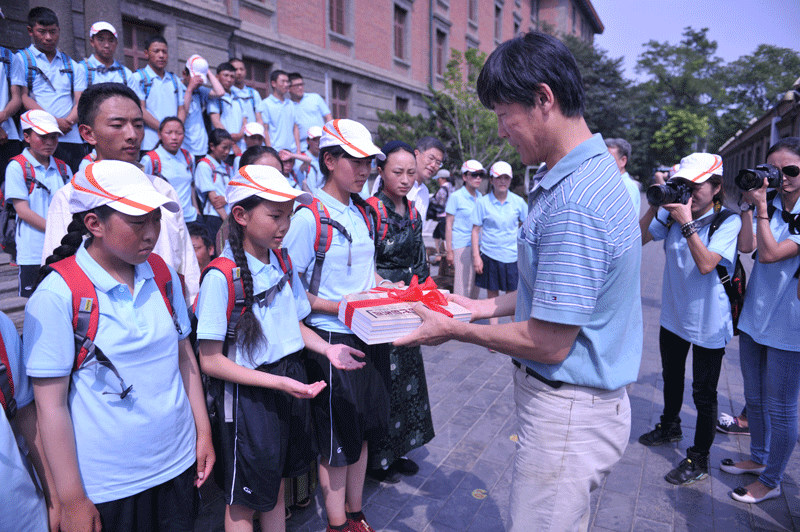 下午2時左右,雜多縣中學(xué)生“三愛”教育訪京團抵達后,參加此次活動的各級領(lǐng)導(dǎo)、老師、學(xué)生和工作人員在北大紅樓前集體合影留念。接著舉行了北京魯迅博物館(北京新文化運動紀念館)向雜多縣中學(xué)生贈書儀式活動,副館長何洪同志向5名中學(xué)生代表贈送了五四新文化運動展覽圖錄《新時代的先聲》60套;5名藏族中學(xué)生向北京魯迅博物館(北京新文化運動紀念館)5名領(lǐng)導(dǎo)、工作人員敬獻了哈達,以示感謝;何洪副館長、王云澤部長、朱鐵志副總編輯先后致歡迎辭、答謝辭和講話,活動現(xiàn)場多次響起陣陣掌聲,營造了深厚的學(xué)習(xí)實踐活動氛圍。