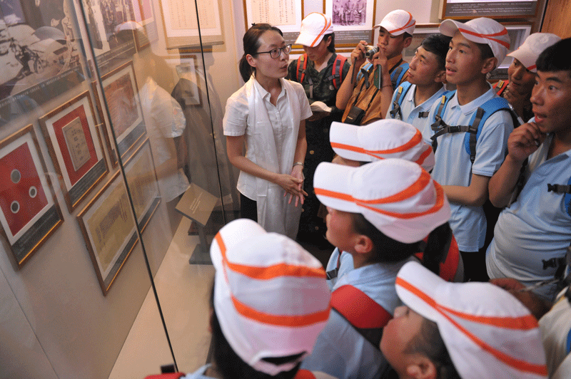 講解員趙雪為中學(xué)生講解五四新文化運動有關(guān)內(nèi)容