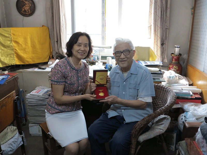 今年是中國人民抗日戰(zhàn)爭暨世界反法西斯戰(zhàn)爭勝利70周年。為體現(xiàn)黨中央、國務(wù)院對(duì)老同志的關(guān)懷和照顧,經(jīng)中央政治局常委會(huì)研究決定,為抗戰(zhàn)時(shí)期及以前參加革命工作的離休干部發(fā)放一次性慰問金。近日,中共中央組織部、財(cái)政部聯(lián)合下發(fā)文件對(duì)此項(xiàng)專門作出安排,要求9月2日前將每人5000元的一次性慰問金送到老同志手中。8月26日上午,北京魯迅博物館(北京新文化運(yùn)動(dòng)紀(jì)念館)館長郭俊英同志,帶隊(duì)專程到抗戰(zhàn)時(shí)期參加工作的離休干部、原北京魯迅博物館副館長鄒青家中,進(jìn)行看望慰問。向其介紹了北京魯迅博物館(北京新文化運(yùn)動(dòng)紀(jì)念館)合并及近期建設(shè)發(fā)展情況,向鄒青同志贈(zèng)送了中共中央、國務(wù)院、中央軍委頒發(fā)的“中國人民抗日戰(zhàn)爭勝利70周年紀(jì)念章”、5000元慰問金和《習(xí)近平談治國理政》、《魯迅研究書刊》等書籍。館黨委副書記李戰(zhàn)崎同志、辦公室副主任張淑君同志、辦公室主任科員李長同志和文物資料保管部副主任夏曉靜同志陪同看望。
