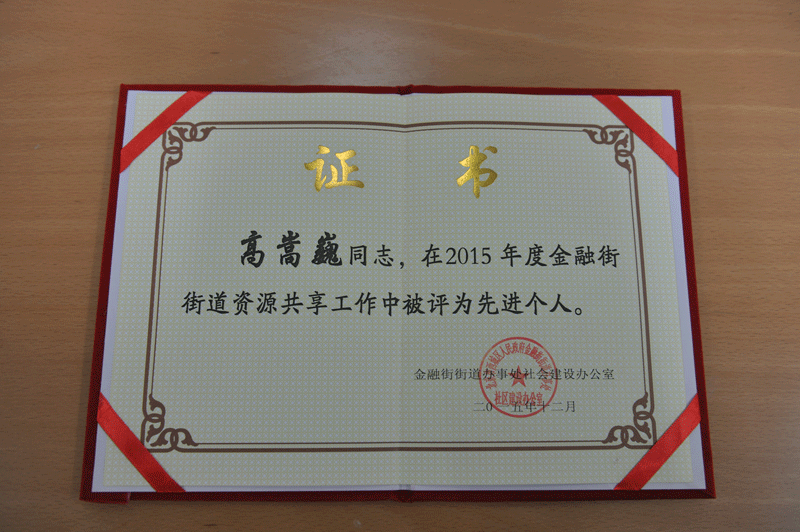 我館獲 “金融街地區(qū)資源共享先進集體”稱號