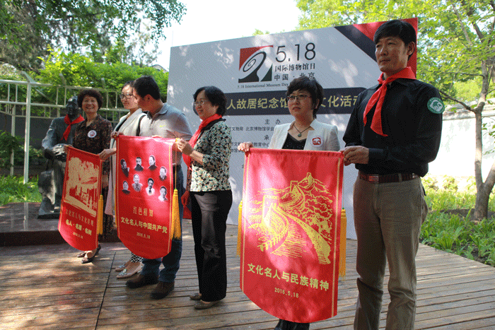 圍繞著今年國際博物館日的主題——“博物館與文化景觀”,在郭沫若紀念館舉行了一場“行走式”的文化景觀體驗活動。八家名人故居紀念館的三大主題展覽巡展也于今日啟動,今年巡展將深入到京內(nèi)外的社區(qū)、企事業(yè)單位、博物館、學校和農(nóng)村等地。平谷區(qū)上宅文化陳列館、門頭溝區(qū)永定河文化博物館和順義區(qū)牛欄山第一中學作為巡展單位代表接受了巡展旗幟。