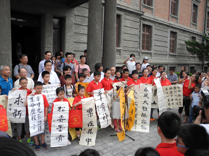 2016年8月20日,由中國(guó)書畫收藏家協(xié)會(huì)、北京魯迅博物館(北京新文化運(yùn)動(dòng)紀(jì)念館)、河北省書法家協(xié)會(huì)教育委員會(huì)、保定市文學(xué)藝術(shù)界聯(lián)合會(huì)、保定市書法家協(xié)會(huì)主辦,保定蘭亭書法學(xué)校承辦的“銘記歷史、追尋經(jīng)典、彰顯底蘊(yùn)•保定蘭亭書法臨帖晉京展”在北大紅樓開幕。全國(guó)政協(xié)常委、中國(guó)書法家協(xié)會(huì)主席蘇士澍,中國(guó)書法家協(xié)會(huì)副主席、河北省書協(xié)主席劉金凱,北京魯迅博物館(北京新文化運(yùn)動(dòng)紀(jì)念館)常務(wù)副館長(zhǎng)黃喬生,國(guó)際博物館協(xié)會(huì)副主席、中國(guó)博物館協(xié)會(huì)秘書長(zhǎng)安來順,中國(guó)書畫收藏家協(xié)會(huì)常務(wù)副會(huì)長(zhǎng)王永茂、保定市委宣傳部副部長(zhǎng)王淑彥,保定市文聯(lián)黨組書記郭樹林等,保定蘭亭書法學(xué)校校長(zhǎng)張建國(guó)、參展師生及觀眾500余人參加開幕式。黃喬生、蘇士澍等有關(guān)領(lǐng)導(dǎo)先后致辭,對(duì)此次展覽的成功舉辦表示熱烈祝賀,對(duì)舉辦雙方付出的辛苦努力表示衷心的感謝,對(duì)蘭亭書法學(xué)校積極傳承中華優(yōu)秀傳統(tǒng)文化給予高度評(píng)價(jià)。開幕式結(jié)束,嘉賓及師生興致勃勃地參觀了展覽。蘇士澍等著名書法家認(rèn)真參觀了展覽,并在現(xiàn)場(chǎng)細(xì)細(xì)點(diǎn)評(píng)了學(xué)生們的參展作品,與他們親密互動(dòng)。為辦好此次展覽,蘇士澍應(yīng)邀為此次臨帖晉京展題寫展標(biāo);其余專家也奉獻(xiàn)了精品墨寶。