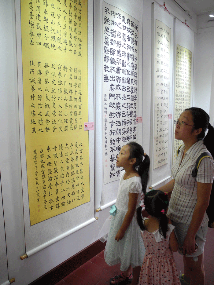 觀眾參觀學(xué)生書法作品
