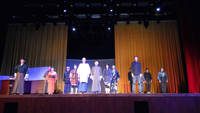 《遠(yuǎn)火——魯迅在仙臺(tái)》這部話劇是以東北大學(xué)“魯迅研究課題組”正逐漸解明的魯迅研究新成果為基礎(chǔ),將“仙臺(tái)時(shí)代的魯迅”和“魯迅時(shí)代的仙臺(tái)”進(jìn)行舞臺(tái)化的嘗試。故事本身是文學(xué)創(chuàng)作性的,把真實(shí)人物和文學(xué)形象相融合,打造了一個(gè)情節(jié)完整、感人至深的故事。故事中另一位重要角色藤野先生是我們中國讀者所熟知的《藤野先生》一文中魯迅的恩師——藤野嚴(yán)九郎。藤野先生的故鄉(xiāng)知交提供了很多關(guān)于他的逸事,這些都作為寶貴的靈感融于話劇創(chuàng)作之中。更令人感動(dòng)的是,在劇中扮演魯迅的大須賀淳在參觀北京魯迅博物館時(shí)意外發(fā)現(xiàn)自己的祖父竟是魯迅在仙臺(tái)醫(yī)專時(shí)的同班同學(xué)。此外,劇中的插曲是結(jié)合本劇情節(jié)的展開并結(jié)合魯迅的小說創(chuàng)作的。主題曲《遠(yuǎn)火》作為全劇的收尾和點(diǎn)睛之筆被日本演員用中文演繹在舞臺(tái)上,贏得臺(tái)下觀眾陣陣掌聲。