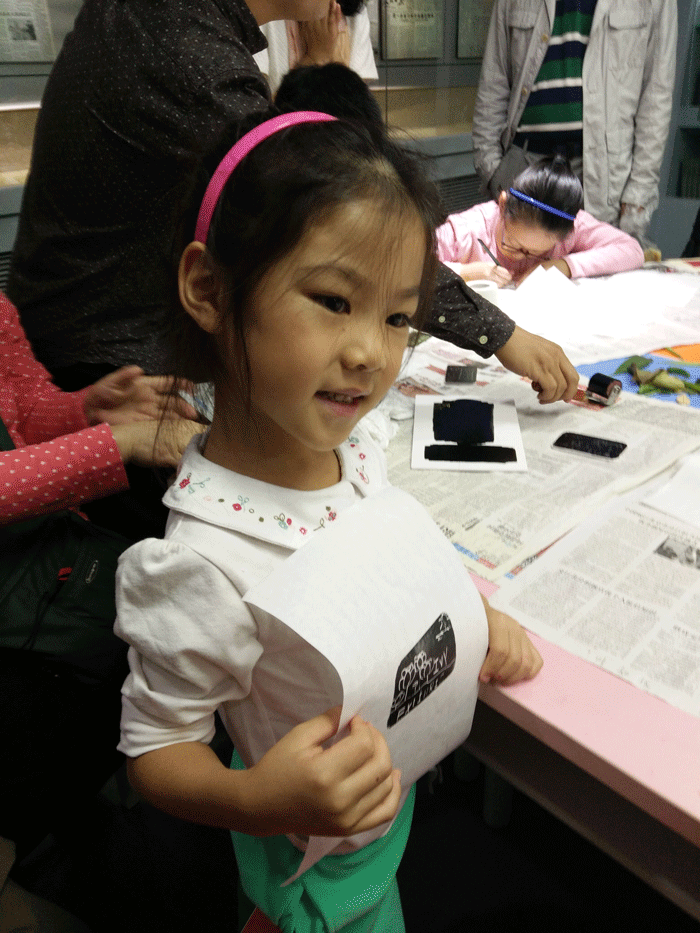 孩子們總會給藝術(shù)帶來驚喜,這個國慶在魯博就收獲了一個個關(guān)于孩子與藝術(shù)的驚喜。印制魯迅先生珍藏版畫與老師的引導,讓孩子們在創(chuàng)作自己的版畫首秀時顯得尤其的游刃有余。一條小魚、幾點波浪、一個簽名、幾叢小花,這些稚拙又活潑的線條,通過孩子們手中的刻刀誕生在印版之上,又通過油墨的印刷,創(chuàng)作出自己人生中第一枚印章、藏書票,孩子帶給“大人”一個充滿童趣和文藝范兒的國慶假日。