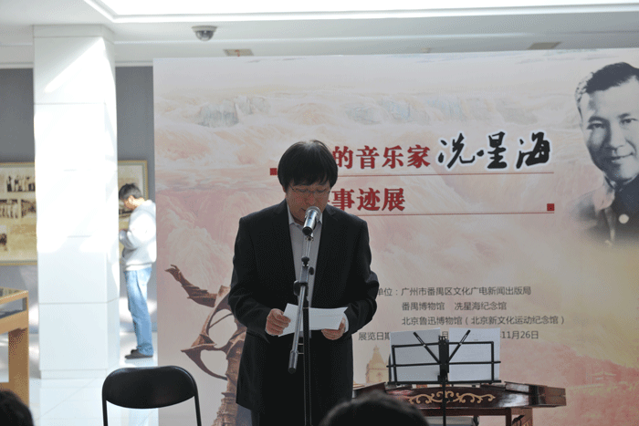 廣州番禺博物館、冼星海紀(jì)念館館長(zhǎng)曾昭明在致辭中回顧了冼星海暫短、偉大而光輝的一生,介紹了番禺區(qū)推進(jìn)星海文化建設(shè)有關(guān)情況,并就今后與我館進(jìn)一步合作進(jìn)行了展望。