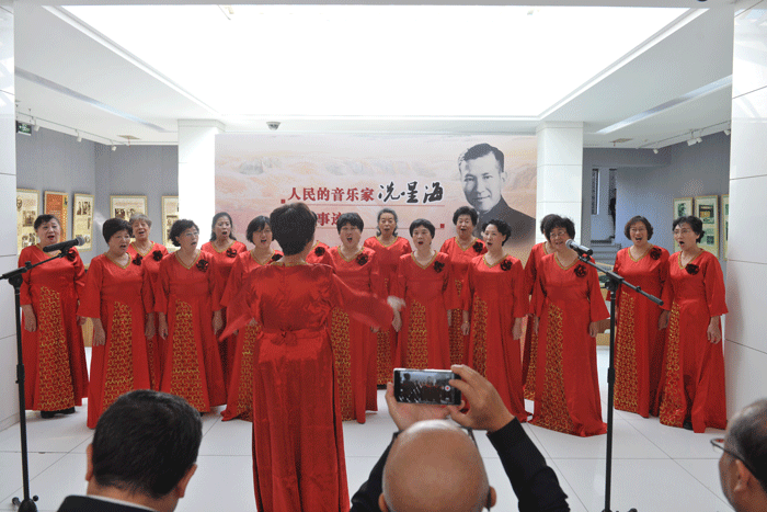 為配合展覽開(kāi)幕,主辦方還邀請(qǐng)了北京銀海民族管弦樂(lè)團(tuán)現(xiàn)場(chǎng)演奏冼星海的經(jīng)典作品《保衛(wèi)黃河》《在太行山上》《到敵人后方去》《夜半歌聲》,把觀眾的思緒帶入到哪烽火連天的抗戰(zhàn)歲月;西城區(qū)金融街社區(qū)合唱團(tuán)演唱了《黃水謠》、《保衛(wèi)黃河》等歌曲,把開(kāi)幕式推向了高潮。