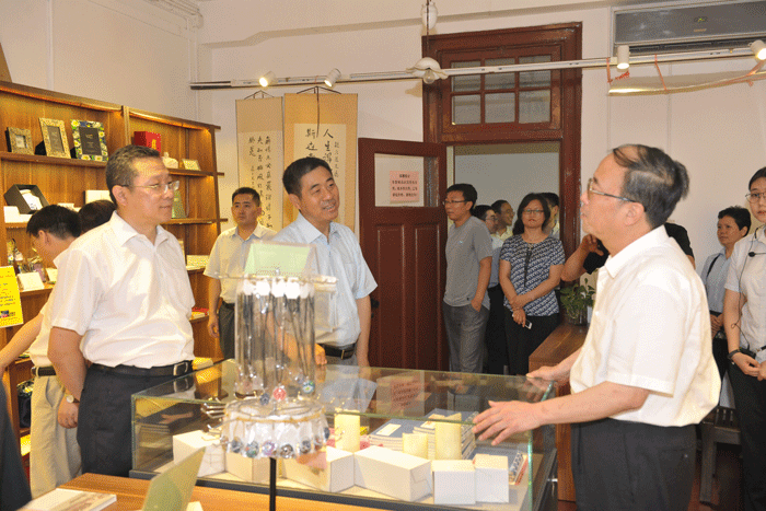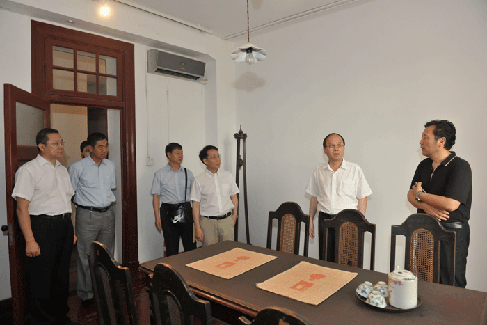 參加黨日活動的全體黨員在北大紅樓前面對黨旗,重溫入黨誓詞,觀看《紅樓往事》錄像,進一步了解北京大學(xué)、新文化運動以及五四運動的歷史過程;參觀李大釗工作過的辦公室、新潮社舊址、毛澤東工作過的第二閱覽室及蔡元培、陳獨秀等專題陳列;參觀《時代的先聲--新文化運動》陳列展。參觀過程中,張部長時常駐足觀看,不時就展覽內(nèi)容向講解員提出詢問。參觀結(jié)束后,張部長一行與國家文物局副局長關(guān)強、北京魯迅博物館(北京新文化運動紀念館)黨委書記李游等同志在一樓會議室就北大紅樓、新文化運動以及我館的發(fā)展情況進行交流座談。