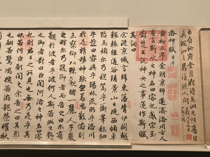 展覽共展出107件作品,來自故宮博物院、上海博物館及遼寧省博物館等,全面涵蓋了趙孟頫一生中書法、繪畫等經(jīng)典作品,如行書《秋興詩》卷、行書《歸去來辭》卷、《秋郊飲馬圖》卷、《水村圖》卷等。大家認(rèn)真參觀了展覽,不僅對展品產(chǎn)生了濃厚的興趣,對展陳設(shè)計(jì)、展陳條件以及安防設(shè)備等也留心觀察,積極向同行學(xué)習(xí),找差距、補(bǔ)短板,努力提高自身業(yè)務(wù)能力水平。