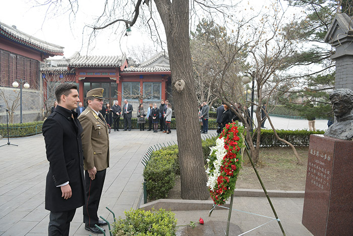 3月14日下午,匈牙利駐華大使白思諦、大使館副館長蘇昕薇,以及在京的外交官員一行到北京魯迅博物館區(qū)舉行向裴多菲銅像獻花儀式;3月17日下午,北京匈牙利文化中心在北京魯迅博物館區(qū)舉辦“遇見裴多菲”相關(guān)紀念活動,邀請北京外國語大學、北京第二外國語學院、天津外國語大學學生以及觀眾近百人參與其中?;顒赢惒始姵?,包括:制作匈牙利徽章、詩歌朗誦比賽、“塔羅高拓”民樂演奏會、電影放映《金克森姆》等,并吸引了來我館參觀的觀眾欣賞。