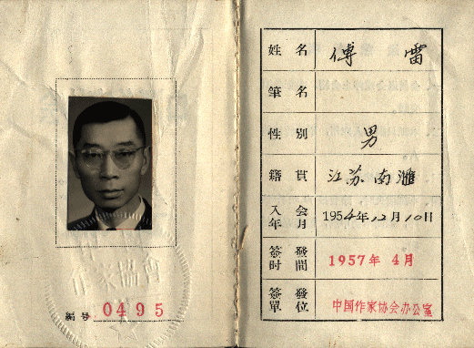中國作家協(xié)會1954年簽發(fā)給傅雷的會員證。