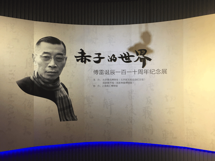 2018年是傅雷誕辰110周年,由北京魯迅博物館(北京新文化運(yùn)動紀(jì)念館)、國家圖書館(國家典籍博物館)主辦,上海南匯博物館協(xié)辦的“赤子的世界——傅雷誕辰一百一十周年紀(jì)念展”于2018年4月13日在北大紅樓開展。