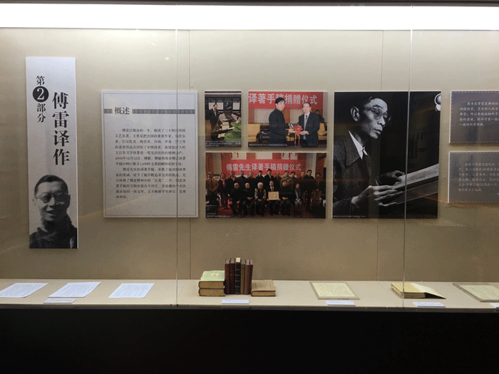本次展覽甄選了143件(套)展品,配合歷史照片,再現(xiàn)傅雷的生活場景、留學(xué)生涯、翻譯成果,其中展品涵蓋了傅雷使用過的生活器具、傅雷的外文及中文藏書、傅雷翻譯的著作及部分手稿、傅雷發(fā)表的文章與評論等。展覽集中介紹了傅雷翻譯的優(yōu)秀外國文學(xué)作品,如《貝姨》、《邦斯舅舅》、《嘉爾曼》、《高龍巴》、《夏倍上?!?、《奧諾麗納》、《禁治產(chǎn)》、《老實(shí)人》、《天真漢》、《藝術(shù)哲學(xué)》、《幻滅》等。