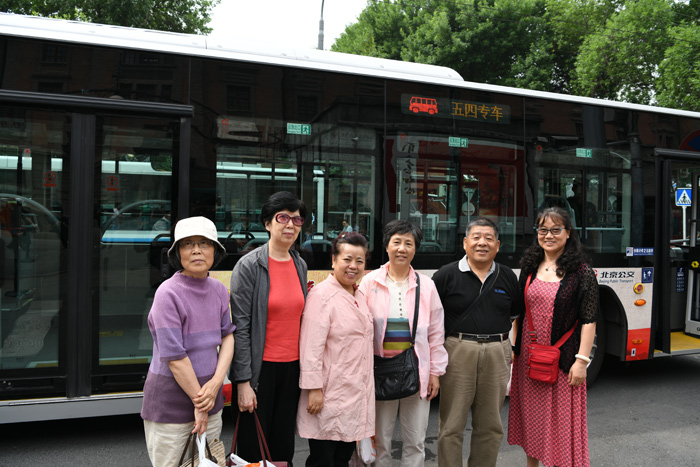 退休黨員在“五四”專線車前合影