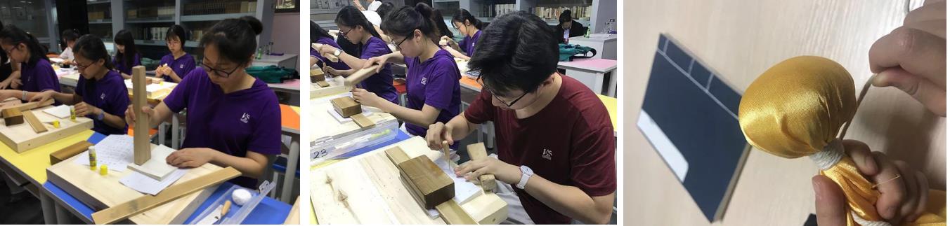 4、講解邊款內(nèi)容。進(jìn)行邊款刻制與鈐蓋印章。