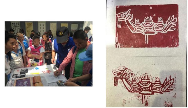 在我們的兒童體驗(yàn)專場中,在刻制過程中,用筆代替刀,這樣既安全,又能體驗(yàn)版畫制作的樂趣,深受低齡兒童的青睞。