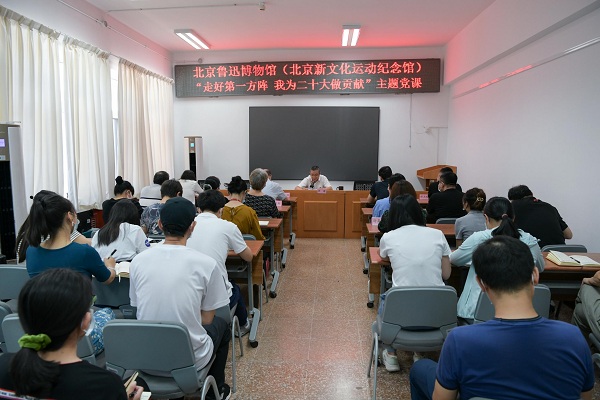 根據(jù)國(guó)家文物局直屬機(jī)關(guān)黨委《關(guān)于組織開(kāi)展“七一”系列活動(dòng)的通知》要求,7月15日,北京魯迅博物館(北京新文化運(yùn)動(dòng)紀(jì)念館)黨委組織開(kāi)展“走好第一方陣 我為二十大做貢獻(xiàn)”主題黨課活動(dòng)。黨委書(shū)記李游同志以“賡續(xù)百年初心 傳承紅色基因,緊緊圍繞提升核心業(yè)務(wù)能力建設(shè)推進(jìn)博物館改革發(fā)展”為題,為全館黨員干部、入黨積極分子、青年團(tuán)員共40余人上了一堂“走好第一方陣 我為二十大做貢獻(xiàn)”專題黨課。