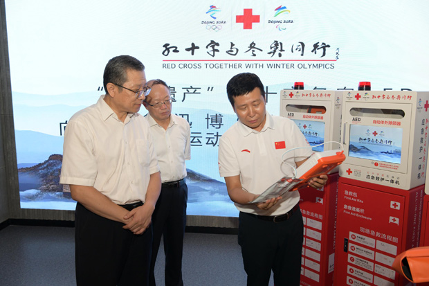 雙方領(lǐng)導(dǎo)為紅十字冬奧AED揭幕