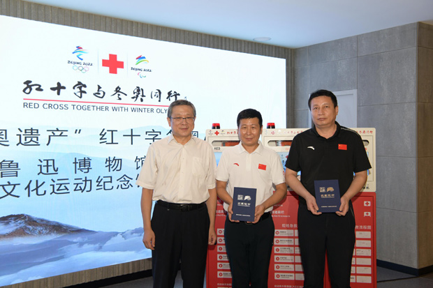 致辭結(jié)束后,雙方領(lǐng)導(dǎo)共同為紅十字冬奧AED揭幕,張緒東向參加儀式的嘉賓介紹了AED的使用及急救護(hù)理知識(shí),隨后李游代表北京魯迅博物館向北京冬奧組委運(yùn)動(dòng)會(huì)服務(wù)部、中國紅十字會(huì)總會(huì)事業(yè)發(fā)展中心冬奧項(xiàng)目辦回贈(zèng)捐贈(zèng)榮譽(yù)證書。