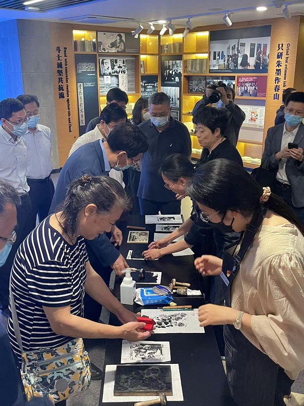 指導組一行參觀調研了魯迅生平陳列展覽、魯迅舊居和館藏文物保護利用等,調研體驗了木刻版畫拓印社會教育活動。在隨后召開的座談會上,黨委書記李游同志從堅持政治引領,高標準高質量推進主題教育;強化理論武裝,堅持讀原著學原文悟原理;注重學用轉化,積極主動為主題教育搭建平臺展現風采等三個方面匯報了我館學習貫徹習近平新時代中國特色社會主義思想主題教育開展情況,3名黨員代表針對館黨委主題教育開展情況、個人學習體會以及結合博物館事業(yè)改革發(fā)展、干部人才隊伍建設、陳列展覽展示和文物資料保護利用等方面進行了交流發(fā)言。