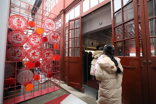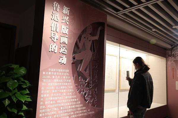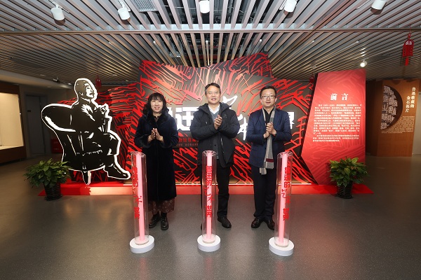 此次展覽在形式設(shè)計(jì)上緊貼主題、力求創(chuàng)新,開(kāi)放期間正值甲辰新春,配合龍年主題,通過(guò)提取剪紙、版畫(huà)、木刻等元素,立體呈現(xiàn)魯迅多元的審美意趣,營(yíng)造輕松祥和的新年氛圍。主題板選取木刻版畫(huà)獨(dú)特的刻痕紋理,呼應(yīng)相伴魯迅一生的藝術(shù)情結(jié);陳設(shè)大型鏤空雕刻裝置,將魯迅作品中具有代表性的場(chǎng)景、人物、主題提煉組合,呈現(xiàn)具有立體感和透視感的光影效果;結(jié)尾處設(shè)置AI互動(dòng)拍照和華容道拼圖,融知識(shí)性、藝術(shù)性于一體,讓觀眾感悟魯迅在嚴(yán)肅文學(xué)外,更加豐富多彩的藝術(shù)人生。