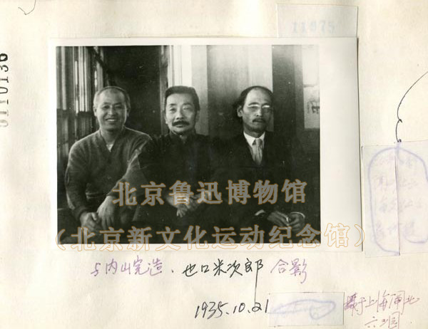 照片名稱:與內(nèi)山完造、也口米次郎合影創(chuàng)作年代:1935年10月21日