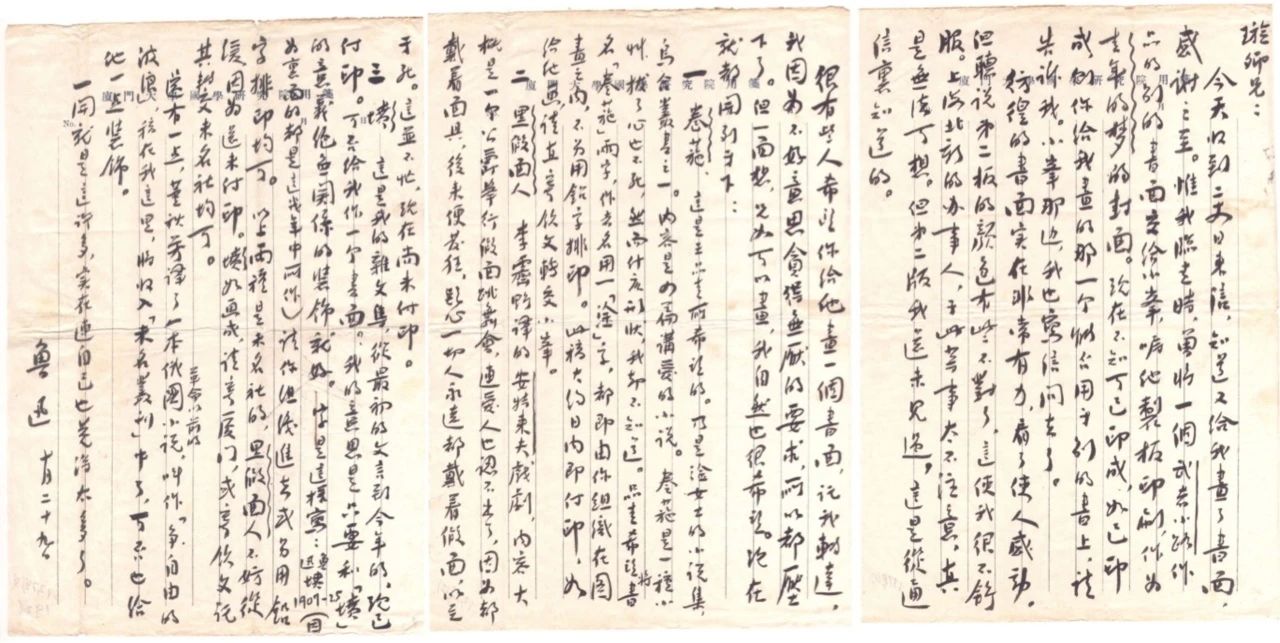 面設(shè)計等事致陶元慶的信(一級文物)