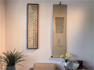 復(fù)原王瑤先生客廳和客廳懸掛的兩幅字畫照