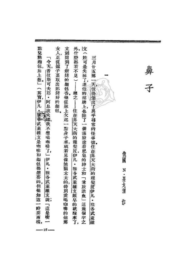 《譯文》創(chuàng)刊號所刊魯迅譯《鼻子》(首頁)