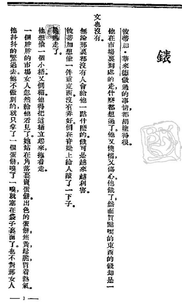 今天為《譯文》看了幾篇小說(中略)現(xiàn)在選定了一篇,在有聊與無聊之間,事情是“洋主仆戀愛”(中略)作者是Rumania的M. Sadoveanu(中略)明天當動手來譯,約有一萬字左右,在以前,必可寄出。[49]