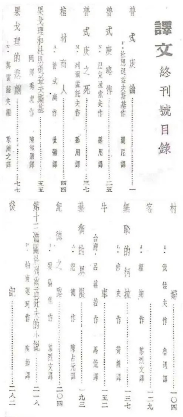 《申報》預告“三卷一號要目”與《譯文》“終刊號目錄”