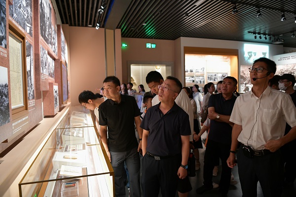 為紀(jì)念中國人民抗日戰(zhàn)爭暨世界反法西斯戰(zhàn)爭勝利80周年,扎實(shí)開展深入學(xué)習(xí)貫徹中央八項(xiàng)規(guī)定精神學(xué)習(xí)教育,7月22日下午,北京魯迅博物館(北京新文化運(yùn)動紀(jì)念館)黨委組織黨員干部、入黨積極分子、青年團(tuán)員、青年理論學(xué)習(xí)小組成員共計(jì)40余人赴中國抗日戰(zhàn)爭紀(jì)念館開展主題黨日活動,活動由黨委委員、副館長馬海亭同志帶隊(duì),主要參觀了“為了民族解放與世界和平——紀(jì)念中國人民抗日戰(zhàn)爭暨世界反法西斯戰(zhàn)爭勝利八十周年主題展覽”。
