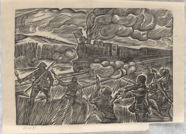 本次展覽精選館藏132幅抗戰(zhàn)時期木刻作品、13種版畫圖書刊物及3封畫家信札,以“舉國之殤”“抗?fàn)幣?rdquo;“萬眾一心”“重整河山”四個主題篇章,系統(tǒng)呈現(xiàn)“捏刀向木、直刻下去”這一樸素藝術(shù)形式所迸發(fā)的強大生命力,充分展示了14年抗戰(zhàn)中中華民族的苦難史與抗?fàn)幨罚貏e是中國共產(chǎn)黨領(lǐng)導(dǎo)下的敵后抗日根據(jù)地起到的中流砥柱作用。作品出自江豐、李樺、陳煙橋、盧鴻基、力群、王琦等多位重要版畫家之手,生動刻畫了白山黑水間的殊死抵抗、青紗帳里的游擊烽火、前線將士的浴血奮戰(zhàn)和廣大民眾團結(jié)支前的感人場面。這些以刀鋒鑄就的歷史畫面,以鏗鏘有力的藝術(shù)語言,譜寫了中華民族氣壯山河的斗爭史詩。