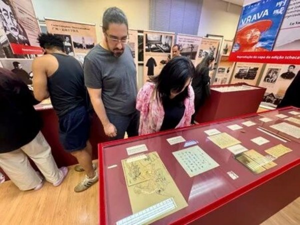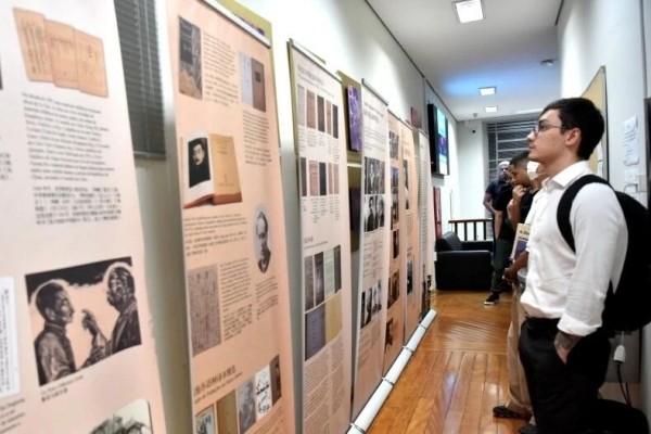 當(dāng)?shù)貢r間10月17日,由國家文物局指導(dǎo)、北京魯迅博物館(北京新文化運動紀(jì)念館)和巴西圣保羅州立大學(xué)孔子學(xué)院共同主辦的“不隔膜,相關(guān)心——魯迅的文藝道路”展覽在圣保羅開展。駐圣保羅總領(lǐng)館雙邊處副主任莊蘇、領(lǐng)事何寶梅;北京魯迅博物館陳列展覽部主任劉靜等一行四人;圣保羅州立大學(xué)校方代表路易斯·羅利姆,圣保羅州立大學(xué)孔子學(xué)院巴方院長路易斯·保利諾、中方院長白夢璇;巴西皇宮博物館館長馬里奧·馬齊利等嘉賓出席了此次開幕式??鬃訉W(xué)院師生及廣大文學(xué)愛好者前來參觀展覽。